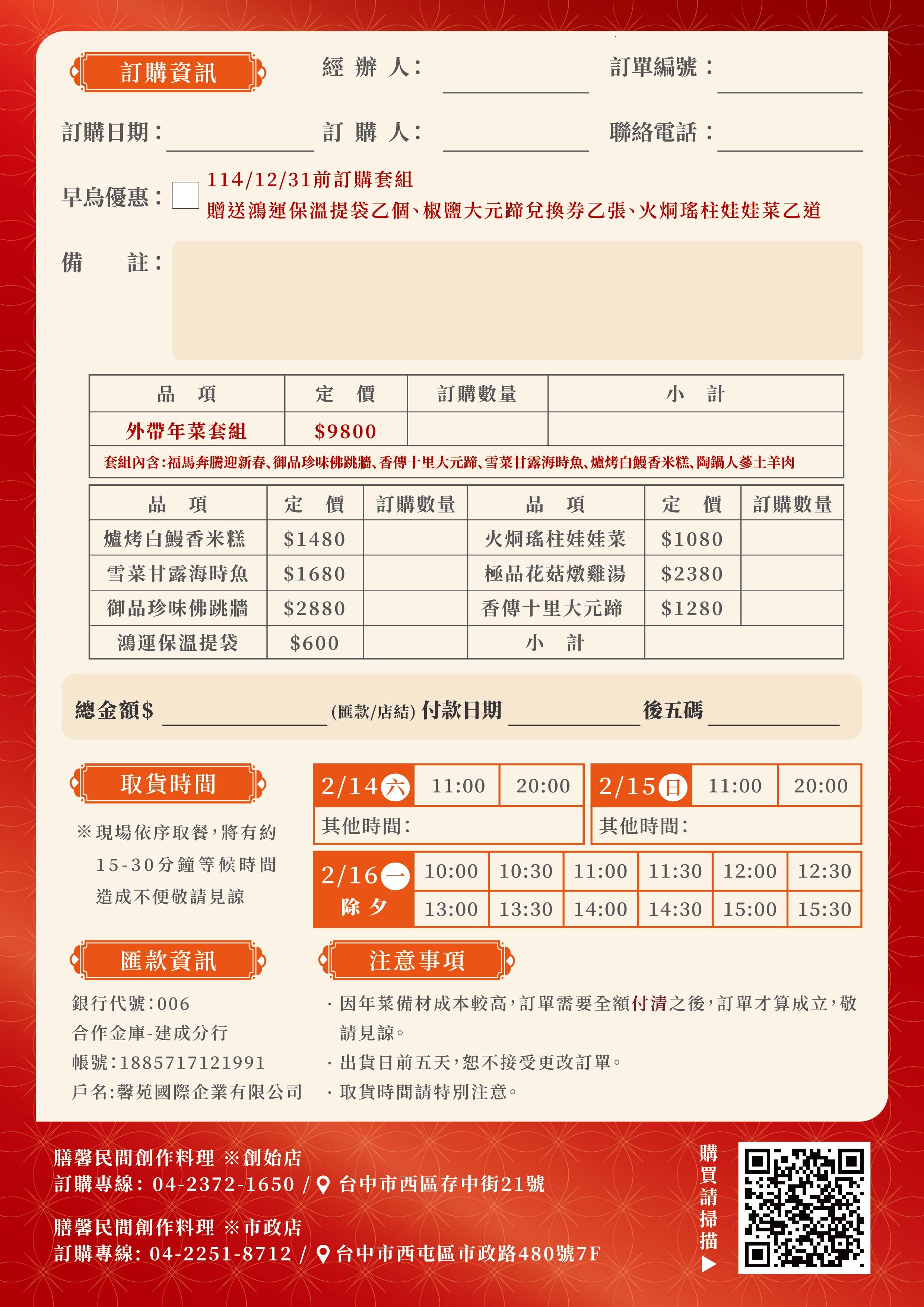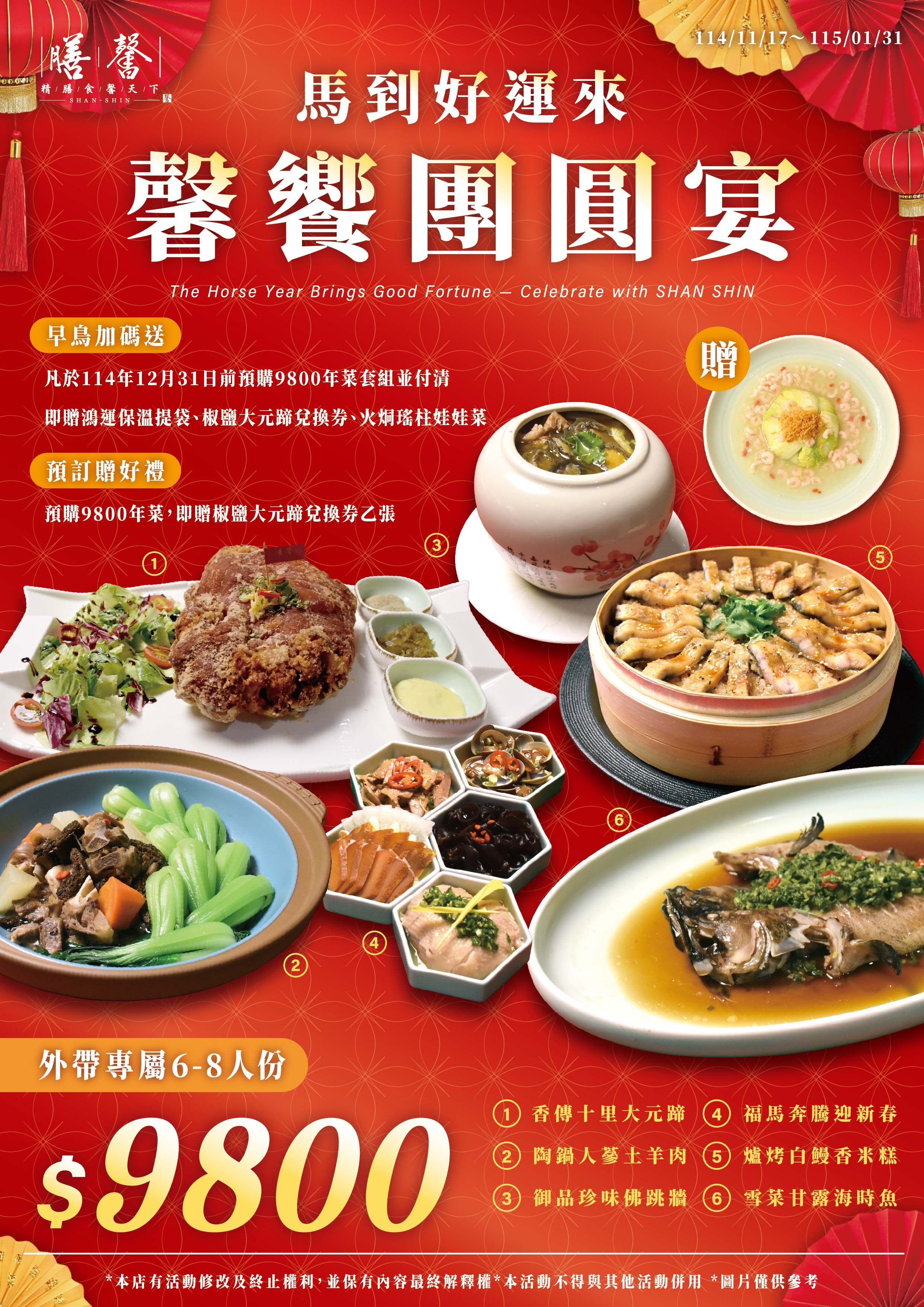 凡預購9800元外帶年菜套組並付清