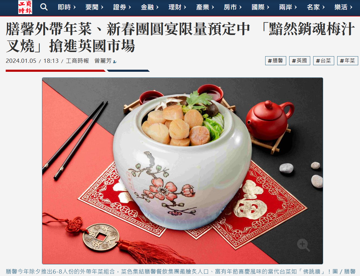 經濟日報|米其林台菜餐廳「膳馨」年菜開賣