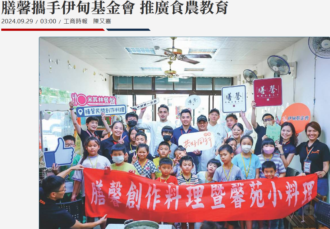 工商時報|米其林臺菜餐廳膳馨 攜手伊甸基金會推廣食農教育