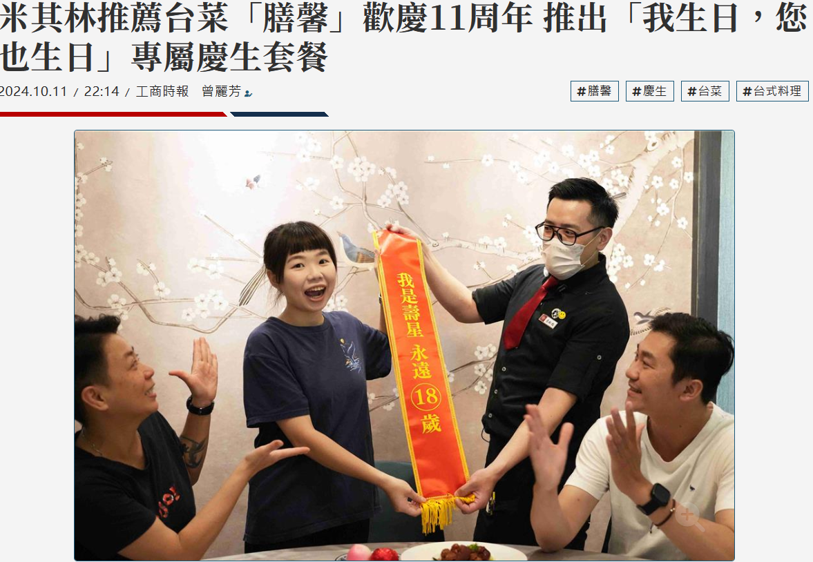 工商時報|米其林推薦台菜「膳馨」歡慶11周年