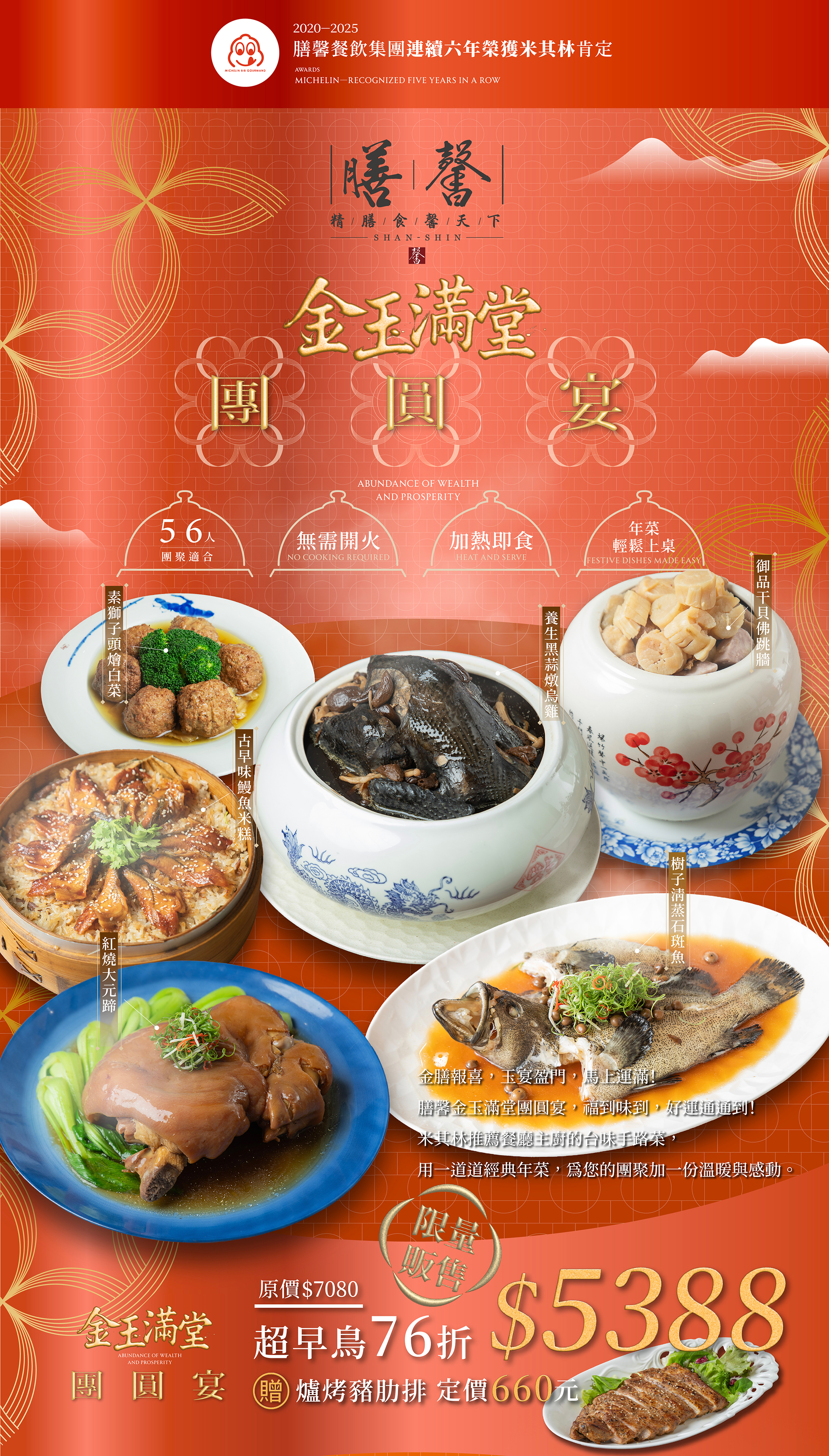 膳馨金玉滿堂團圓宴冷凍年菜(5-6人份)