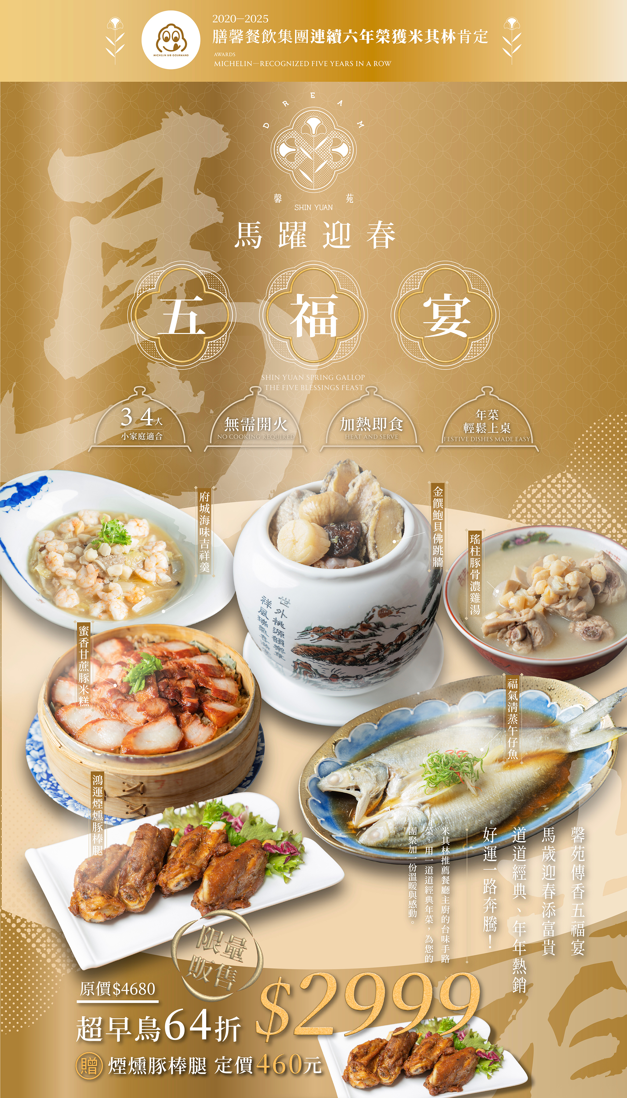 馨苑馬躍迎春五福宴冷凍年菜(3-4人份)
