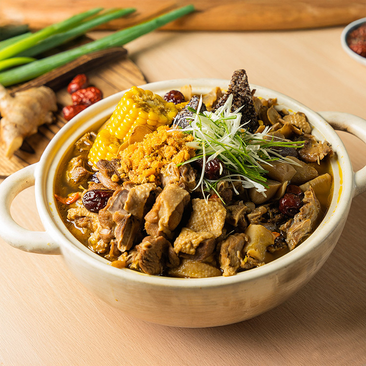 主要成份:蝦高湯(水、蝦頭、洋蔥、鹽、糖、鰹魚粉(調味劑(L-麩酸鈉、5'-次黃嘌呤核苷磷酸二鈉、琥珀酸二鈉)、食鹽、乳糖、砂糖、乾燻鰹魚、鰹魚抽出物、酵母抽出物、D-木糖、麥芽糖、葡萄糖、糊精)、蝦粉(糊精、蝦、鹽、L-麩酸鈉、琥珀酸二鈉、葡萄糖、大豆油)、當歸、黃耆)、鴨肉、米酒、玉米、胡麻油(芝麻油、大豆沙拉油)、杏鮑菇、米血(糯米、白米、豬血、鹽、玉米糖膠、己二烯酸鉀)、薑汁(薑、水)、薑、紅棗、枸杞。