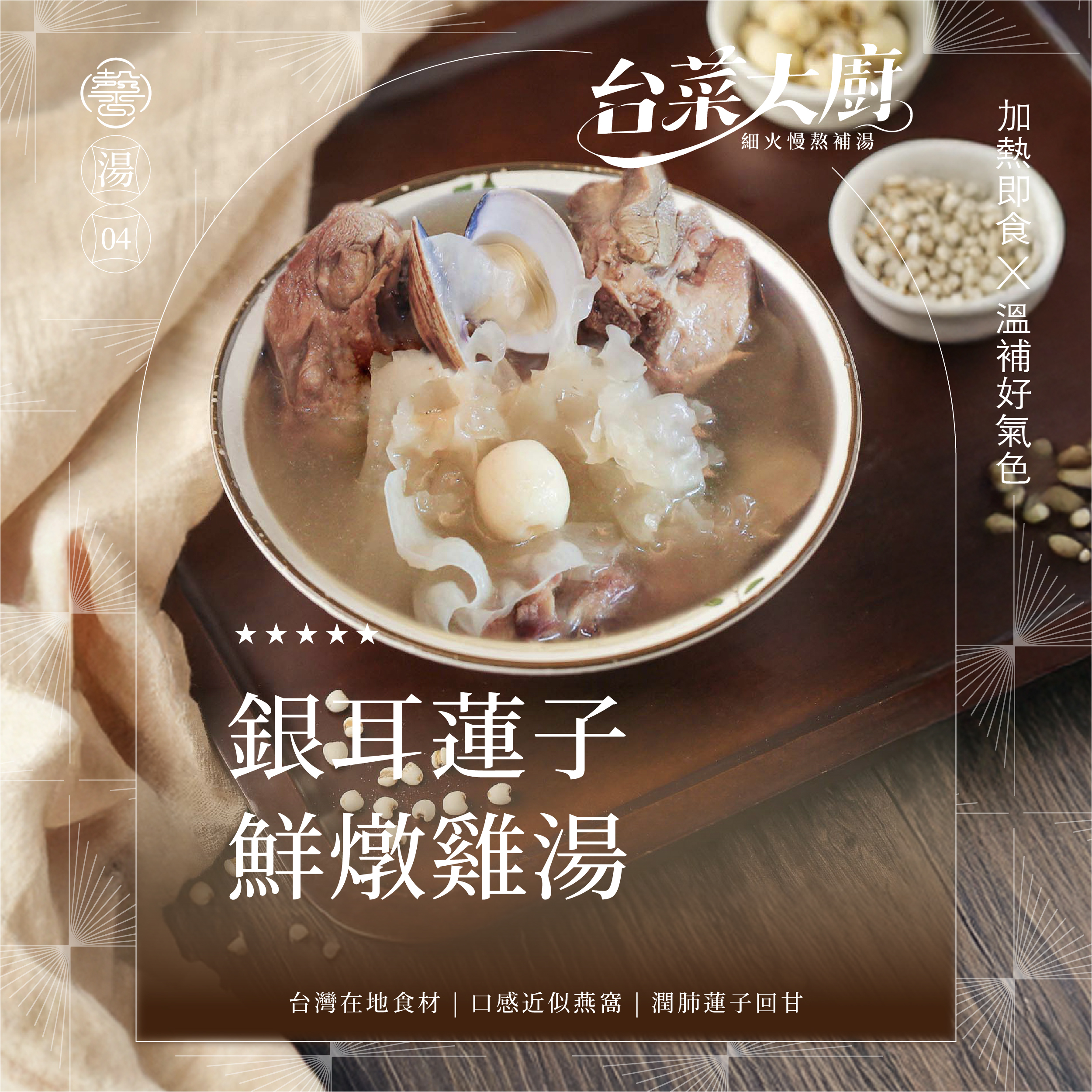 主要成分:雞高湯(水、雞骨、白蘿蔔、紅蘿蔔、洋蔥、蛤蜊、食鹽、糖)、雞腿肉、白木耳、蓮子、枸杞、薑片